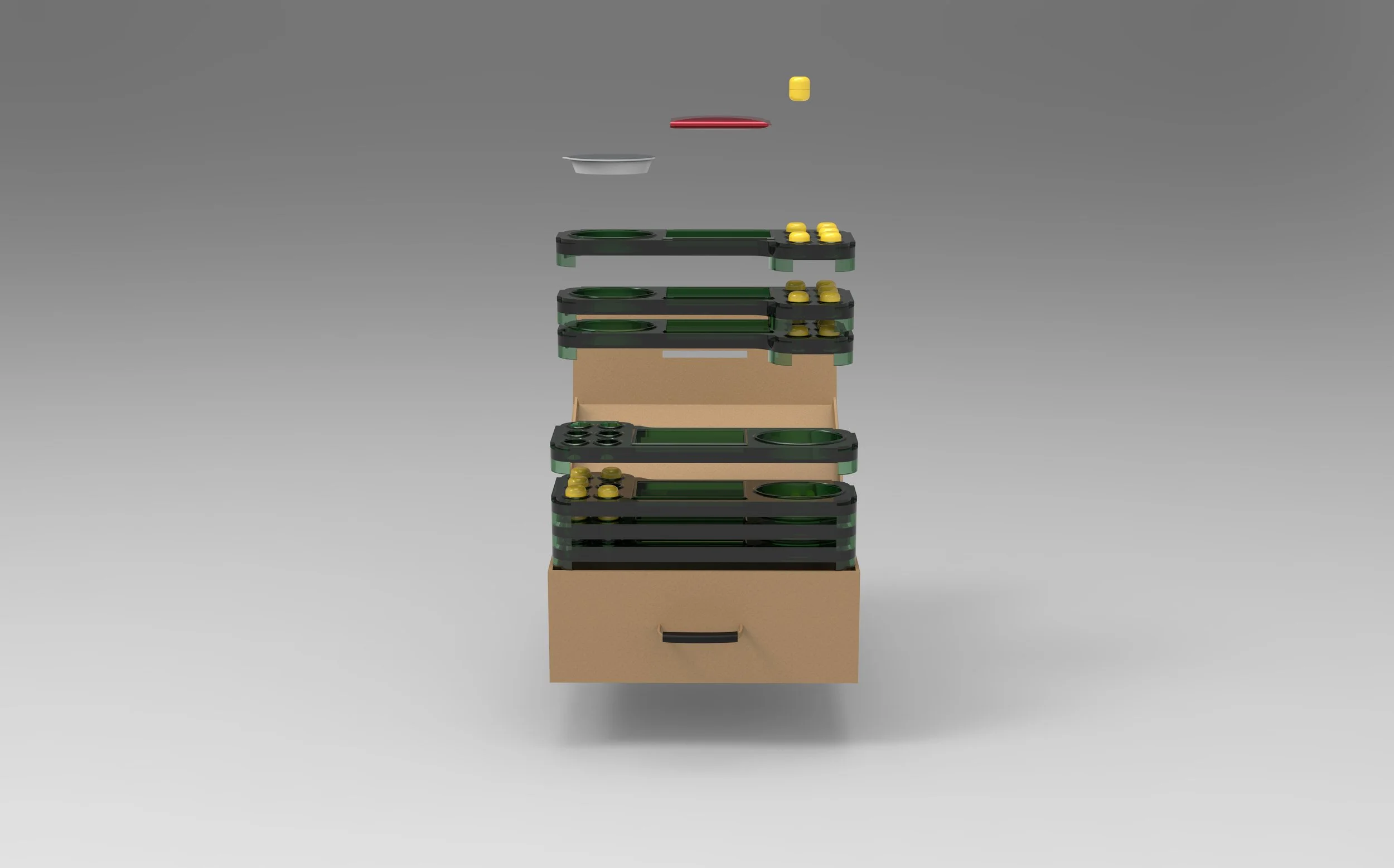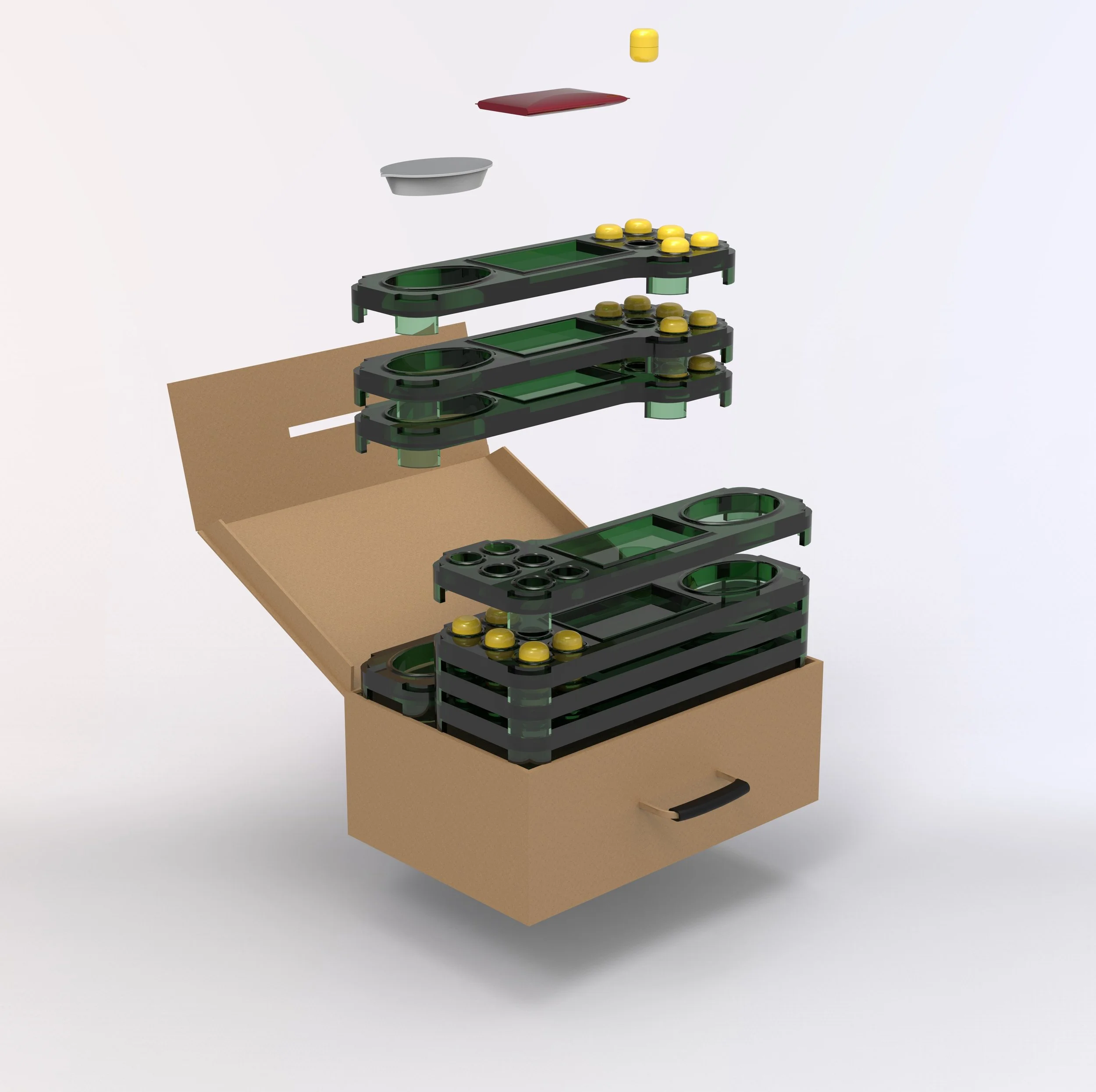 Early prototypes tested different formats, from bottles to trays. I chose the tray system for its link to everyday cooking, stackability, and clear layout. Quick mock-ups helped refine handling, portion sizes, and packaging, making the concept intuitive while keeping costs low.