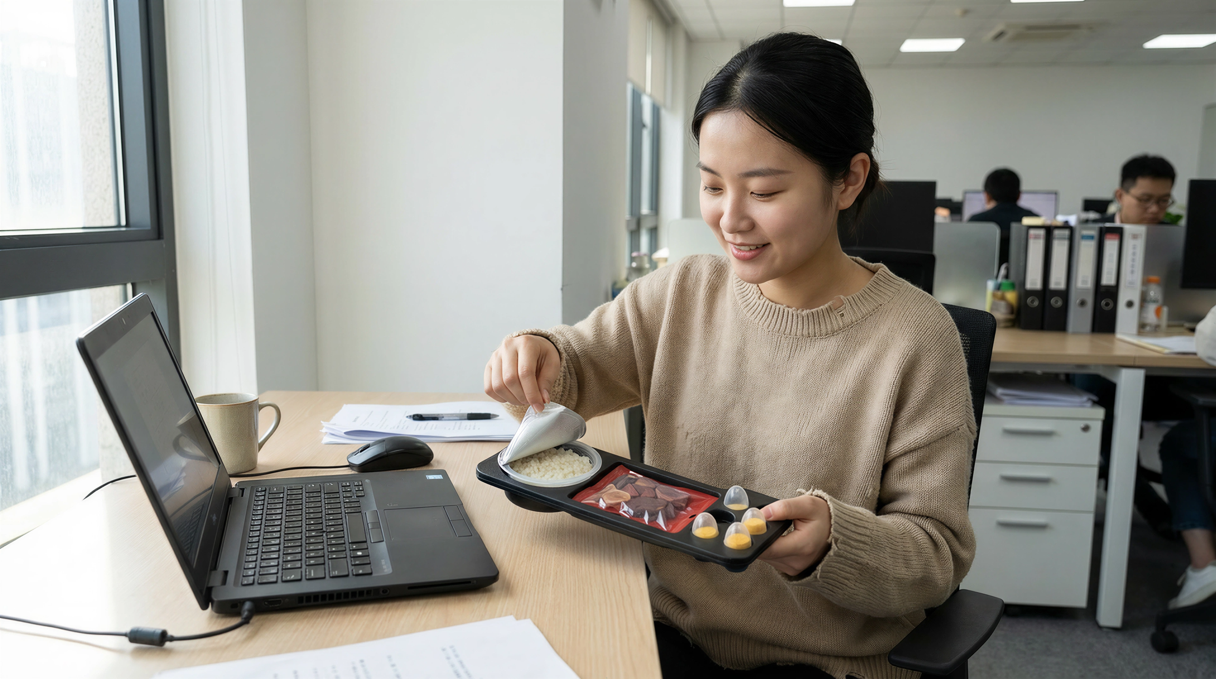 The outcome was a stackable powdered food tray providing a full meal for around £0.25. By adding water and heat, powders like egg or rice became simple, nutritious dishes. The design targeted low-income families, especially parents skipping meals, and aimed to reduce financial stress while keeping a sense of cooking ritual. Though not perfect in sustainability, the tray offers a speculative, empathetic response to food insecurity in future 15-minute cities.